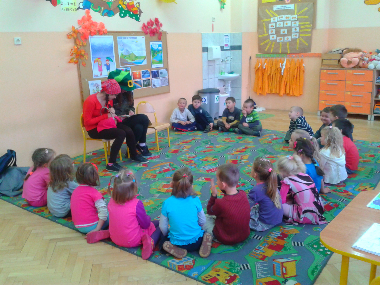 Starsze koleżanki odwiedziły też wszystkie grupy przedszkolne i młodszych kolegów przeniosły w zaczarowany świat baśni, czytając krótkie bajeczki. Dzieciakom z grupy 3- i 4-latków tak się to spodobało, że nie chciały ich wypuścić.